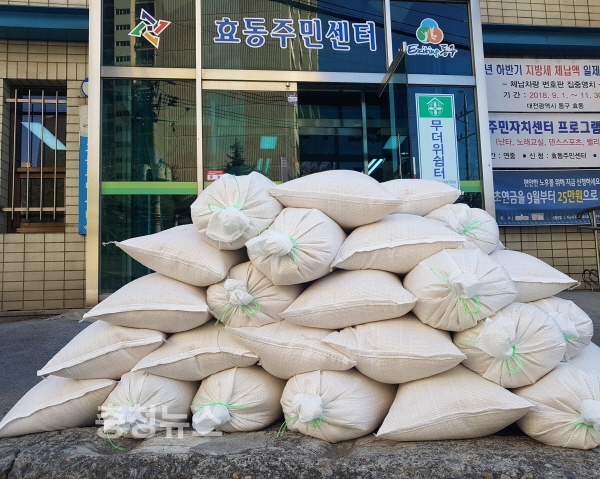 이는 익명의 독지가가 벌써 3년째 보내오는 사랑의 쌀로, 이날 효동주민센터에 백미 480kg, 판암1동주민센터에 520kg 등 총 1000kg 쌀이 전달됐다.