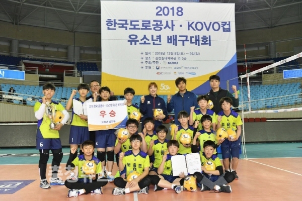 도솔초 고학년 남자부는 지난 8일부터 9일까지 이틀간 김천에서 열린 ‘2018 한국도로공사·KOVO컵 유소년 배구대회’에서 광주 어등초를 2대0으로 누르고 정상에 올랐다.