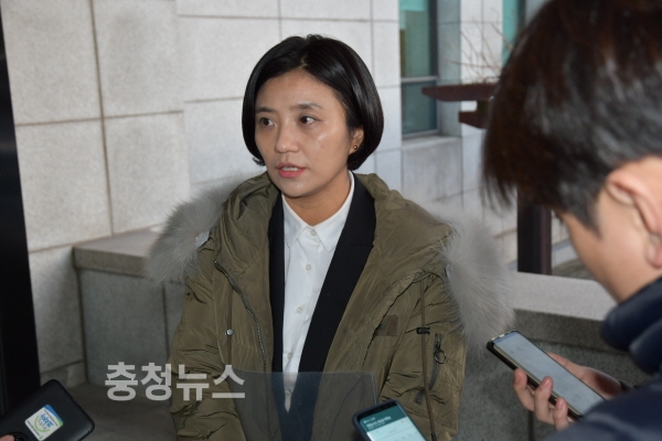 김소연 대전시의원이 대전지방검찰청에 재정신청 후 기자들과 이야기 하고 있다. / 충청뉴스 김용우 기자