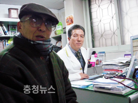 ▲ 박기서 원장에게 진료받는 조모씨(2009년도 대전광역시 중구 의사협회 회장)