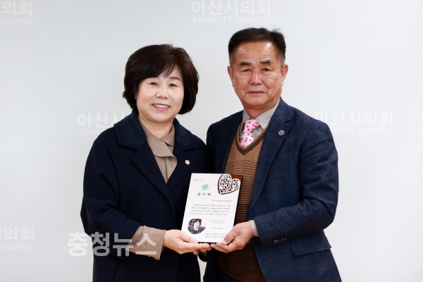 김영애 아산시의회 의장, 농업·농촌의 가치 높여 감사패 받아