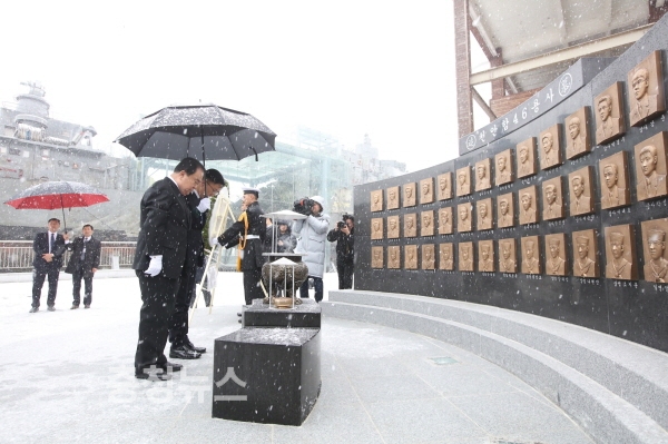 이후 문 의장은 천안함 용사들을 참배했다. 이 자리에서 문 의장은 “위국헌신(爲國獻身)의 고귀한 희생을 결코 잊지 않겠다”고 말했다.