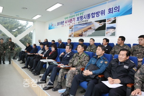 충남 보령시통합방위협의회는 지난 13일 공군사격지원대에서 통합방위협의회 의장인 김동일 보령시장 등 20명의 위원들이 참석한 가운데 4분기 통합방위회의 및 연말 군경 위문을 실시했다.