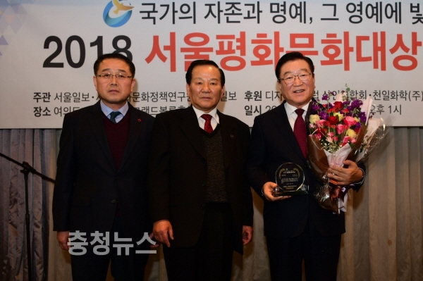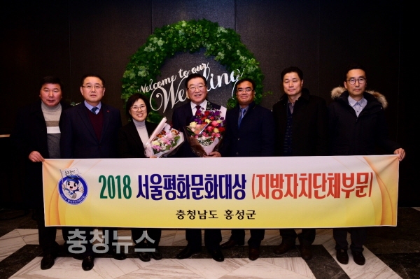 충남 홍성군(군수 김석환)이 14일 서울 여의도 켄싱턴 호텔에서 열린 2018년 서울평화문화대상 지방자치단체 부문에서 대상 수상의 영예를 안았다.