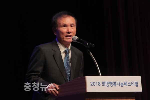 ‘2018 희망행복나눔페스티벌’에서(재)골프존문화재단 김영찬 이사장이 지역의 소외계층 및 다문화가정 등의 아동에게 인사말을 전하고 있다