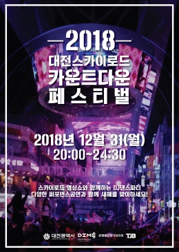대전마케팅공사(사장 최철규)는 이달 31일 으능정이거리 대전스카이로드 일원에서‘2018 대전스카이로드 카운트다운 페스티벌’을 개최한다고 18일 밝혔다.