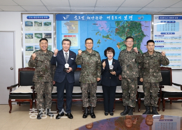 이날 황인권 제2작전사령관을 대신해 김태일 32보병사단장이 김동일 보령시장과 박금순 보령시의회 의장에게 감사패를 전달했다.