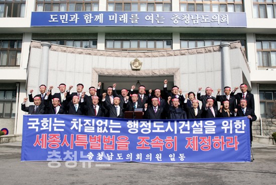 충남도의회(의장 강태봉)가 세종시특별법 제정 지연과 관련해 집회를 갖고 이를 조속히 제정할 것을 촉구하고 나섰다.