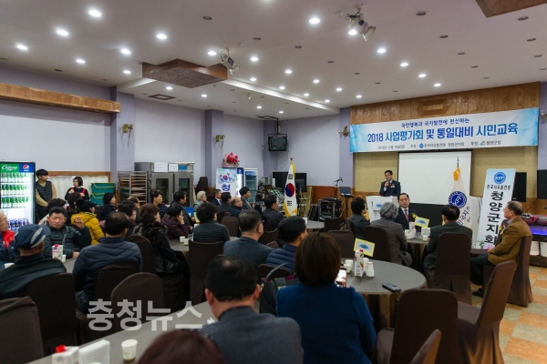 한국자유총연맹 청양군지회(지회장 유석근)는 지난 18일 청양읍 소재 라온웨딩홀에서 회원 140여명이 참석한 가운데 사업평가회 및 통일대비 시민교육을 개최했다.
