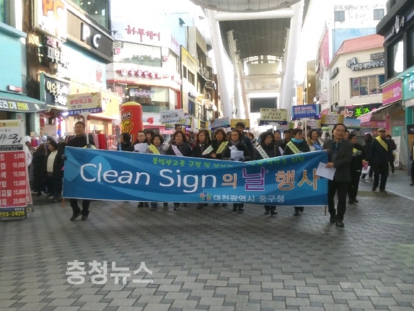 대전 중구(구청장 박용갑)는 19일 대흥동 우리들공원에서 민․관 합동불법 광고물 근절과 건전한 광고문화 정착을 위한 ‘Clean – sign 의 날’ 행사를 실시했다.