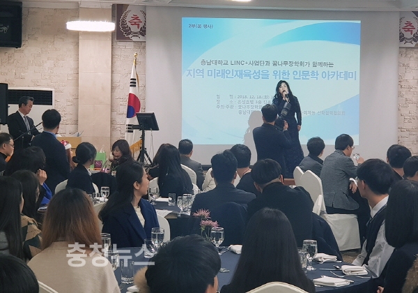 지난 18일 유성호텔에서 ‘충남대학교 LINC+사업단과 꿈나무장학회가 함께하는 지역 미래인재육성을 위한 인문학 아카데미’ 개최
