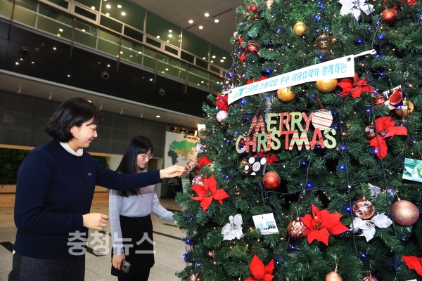 한국농수산식품유통공사(aT, 사장 이병호)의 농식품 전문 컨벤션인 서울 양재동 aT센터에는 발효홍삼, 가공스낵과 음료 등 국산 농식품 사진들로 장식한 크리스마스트리가 설치되어 이용객들의 눈길을 끌고 있다.