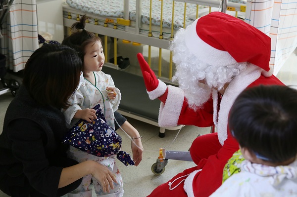 이날 행사에는 대전의 이벤트업체인 ㈜플러스학원 직원 10여 명이 산타클로스 복장을 하고 직접 마련한 선물을 입원해 있는 아이들에게 전달하고 기념촬영을 하는 등 성탄의 즐거움을 나눴다.