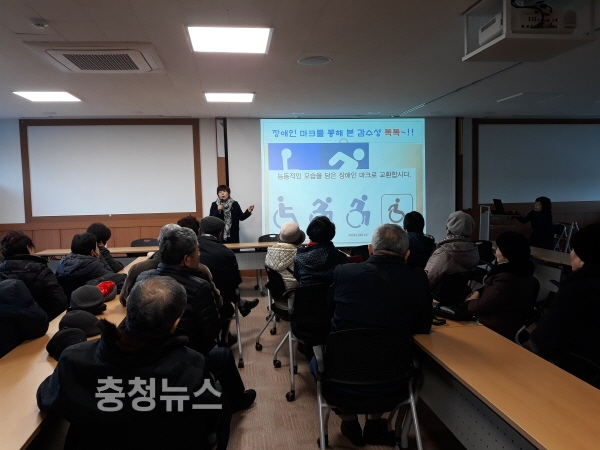 장애인식개선 교육은 장애인복지법 및 장애인과 관련된 법령이 개·제정되고 복지제도가 많이 변화되고 있으나 아직까지 장애인에 대한 차별과 편견이 많이 상존하고 있어 특히, 읍면동에서 장애인, 노인 등 취약계층을 많이 만나는 지역사회 복지리더인 행복키움추진단 및 복지이·통·반장을 중심으로 실시됐다.