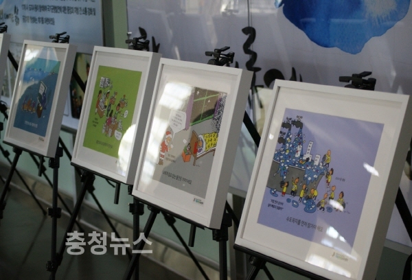 세종환경교육센터(센터장 손경희)가 24일 세종시청 1층 로비에서 “환경만화전과 미호천의 생물을 주제”로 전시회를 열었다.