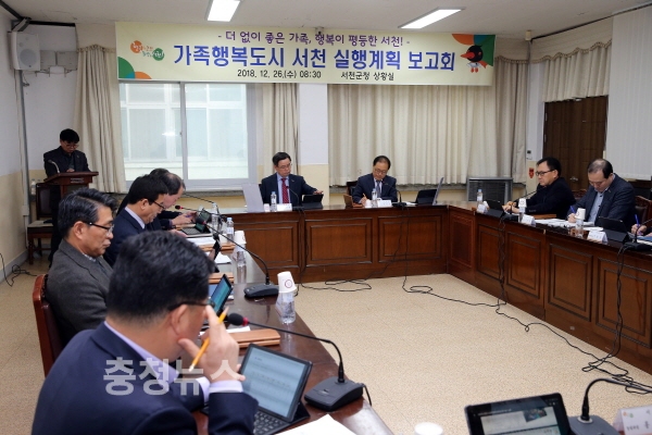 충남 서천군(군수 노박래)은 26일 군청 상황실에서 관련 부서장 등 15명이 참석한 가운데 '가족행복도시 서천 실행계획' 보고회를 개최했다.