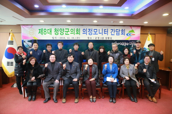 16명의 의정모니터가 참석한 간담회에서는 새로 구성된 제8대 청양군의회 의원 소개에 이어 ▲제8대 청양군의회 활동 현황 ▲2018년 상반기 의정모니터 설문조사 결과 ▲2019년 청양군의회 운영계획에 대한 설명에 이어 ▲청양군의회 발전방향에 대해 의정모니터와 의원들간의 대화와 의견 제시 등으로 진행됐다.