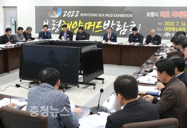 충남 보령시는 27일 오전 시청 중회의실에서 김동일 시장과 각 부서장 등 관계자 30여 명이 참석한 가운데 2022보령해양머드박람회와 연계할 사업 발굴을 위한 보고회를 개최했다.