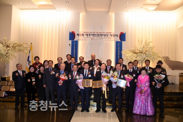 박용갑 대전 중구청장은 27일 서대전컨벤션웨딩홀에서 열린 세종대왕 즉위 600주년 기념사업 조직위원회에서 주최한‘2018년 애민 문화대상 시상식’에서 사회공헌부문 애민문화대상을 수상했다.