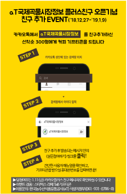 aT국제곡물시장정보, 카카오톡 플러스 친구 맺기 이벤트 진행