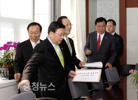 자유선진당 권선택 원내대표를 비롯한 당5역이 오늘 오전 이달곤 행정안전부 장관을 방문, ‘정부이전기관 변경고시 조속이행 촉구(안)’을 전달하고 3월 안에 변경고시를 이행할 것을 촉구했다.