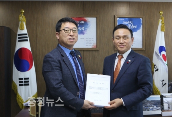 이종담 의원(천안시의회 경제산업위원장)은 27일 시청 7층 시장실에서 구본영 시장을 직접 만나 “천안아름초등학교 앞 과속 단속 카메라 설치 요구 관련 주민 청원서를 전달했다”고 29일 밝혔다.