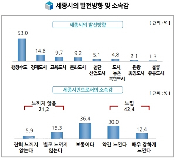 세종시민의 53%가 향후 세종시의 발전방향으로 ‘행정수도’를 꼽았다.