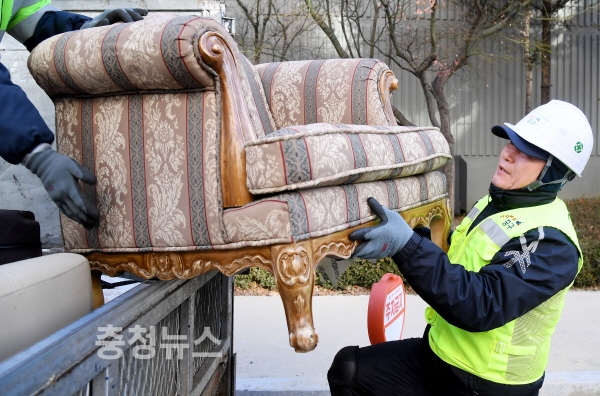 수은주가 영하 7도에 머무르고, 코 끝 쨍한 바람으로 체감온도는 영하 10도를 넘어선 지난 28일 오후 태평동, 박용갑 중구청장은 2시간여 동안 이어지는 가구 해체와 상차 작업에 구슬땀을 흘렸다.