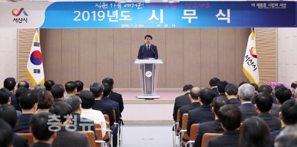 충남 서산시가 2일 시청 대회의실에서‘2019년 시무식’을 열고 기해년(己亥年) 새해의 힘찬 발걸음을 내딛었다.