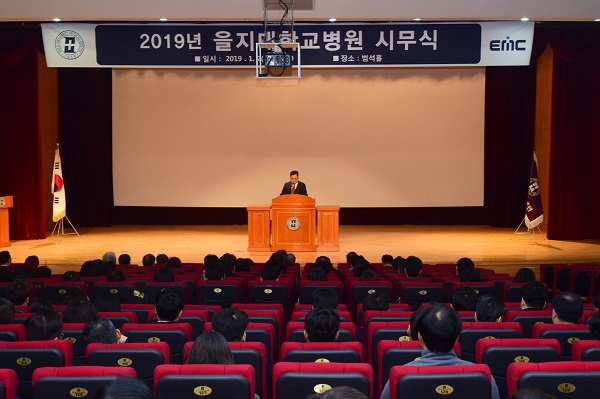 을지대학교병원(원장 김하용)이 2일 오전 병원 3층 범석홀에서 박준영 을지재단 회장과 이승훈 을지대의료원장을 비롯해 병원 교직원 500여 명이 참석한 가운데 시무식을 갖고 기해년 새해를 힘차게 출발했다.