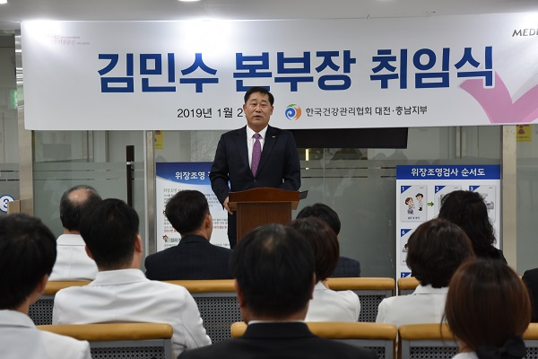 한국건강관리협회 대전충남지부는 2일, 김민수 신임 본부장 취임식 및 사업 발대식을 가졌다.