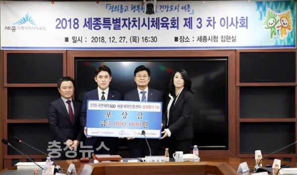 세종특별자치시체육회가 운영하는 국민체력100 세종체력인증센터가 국민체육진흥공단에서 진행한 성과평가에서 99점을 획득하여 전국 41개 센터 중 1위를 자치했다.