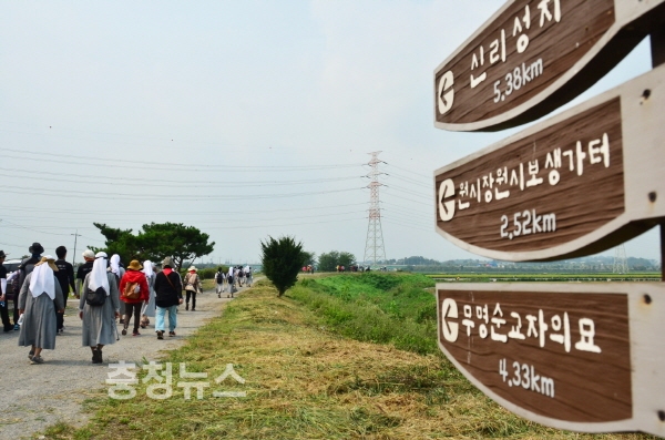 순례길은 1890년 양촌공소에서 시작해 내포 천주교 역사의 중요한 거점인 합덕성당과 세계관개시설물 유산으로 등재된 합덕제와 합덕제 중수비를 거쳐 원시장과 원시보 우물터, 무명순교자의 묘를 경유해 조선 제5대 교구장을 지낸 다블뤼 주교의 거처와 순교미술관이 함께 있는 신리성지까지 약 13.3㎞ 코스로 이뤄져 있다.
