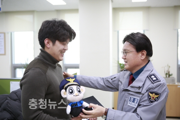 황운하 대전경찰청장은 7일 유성경찰서 강력팀을 찾아 범인검거 유공 경찰관 2명에게 표창을 수여했다.
