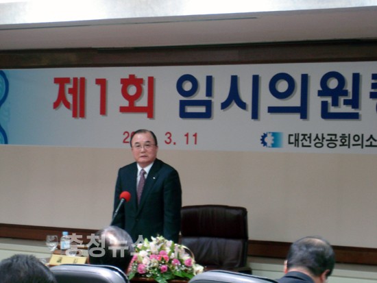 대전상공회의소는  11일 오전 11시 대전상의 4층 의원총회실제1회임시회의 총회를 열고 송인섭 현회장을 만장일치로 추대하고 임원 선출을 단행했다.