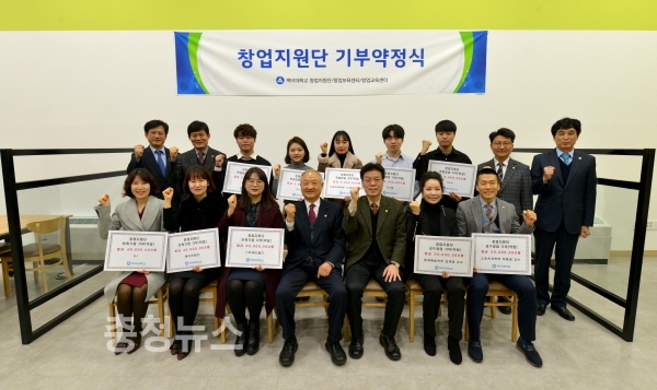 백석대학교 창업지원단은 10일 교내 본부동 창업카페에서 기부약정식을 개최했다. 이날 약정식에는 장택현 대학혁신위원장을 비롯한 대학 보직자들과 창업자들이 함께했다.