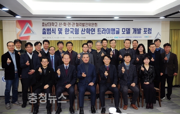 충남대학교 산학연구본부 산학협력중개센터와 LINC+사업단은 지난 11일, 충남대 영탑홀에서 ‘산학연관 협력발전위원회 출범식 및 한국형 산학연 트라이앵글 모델 개발 포럼’을 개최했다.