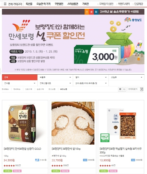 만세보령 농특산물, ‘우체국 쇼핑몰’통해 저렴하게