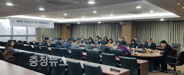 충남 천안시는 15일 시청 중회의실에서 2019년도 학교급식지원 심의위원회를 열고 성장기 학생의 건강한 심신발달과 교육복지 실현, 지역우수 식재료 및 친환경 농·축산물 공급 확대 등을 논의했다고 밝혔다.