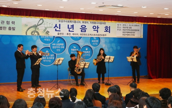 대전 유성구(구청장 정용래)는 16일 구청 대강당에서 유성구지역사회보장협의체, 유성구행복네트워크(상임대표 이연형), 유성구행복누리재단(이사장 김홍혜) 공동주관으로 민관협력 특별한 출발을 위한 ‘신년 음악회’를 열었다고 밝혔다.
