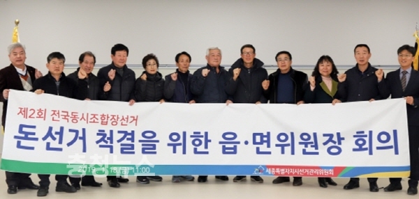 세종특별자치시선거관리위원회는 18일 보람동 청사 회의실에서 제2회 전국동시조합장선거의 ‘돈 선거 척결을 위한 읍․면위원장 회의’를 개최했다.
