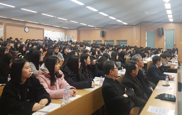 논산 대건고에서 예비 고2,3학년, 학부모, 교사 350여명 참석