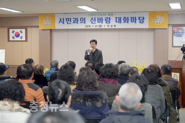 김정섭 공주시장이 기해년(己亥年) 새해를 맞아 16개 읍·면·동 방문에 나선 가운데, 21일 고향인 우성면을 방문했다.