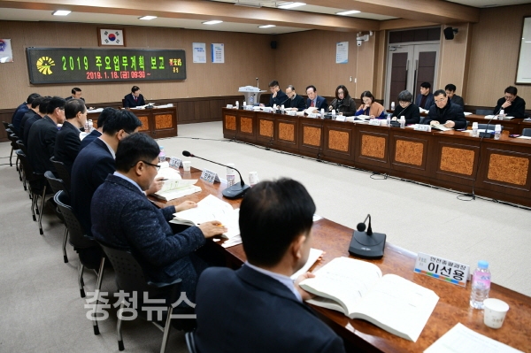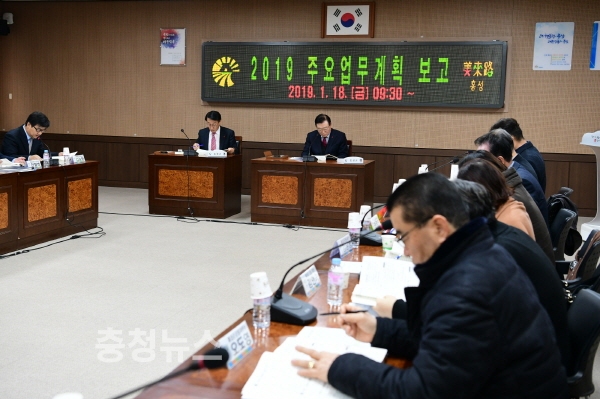 충남 홍성군은 지난 18일부터 21일까지 군청 회의실에서 김석환 군수와 이용록 부군수를 비롯한 각 담당관·과장, 직속기관·사업소장 및 군정자문단 등이 참석한 가운데 2019년 주요업무계획 보고회를 개최했다.