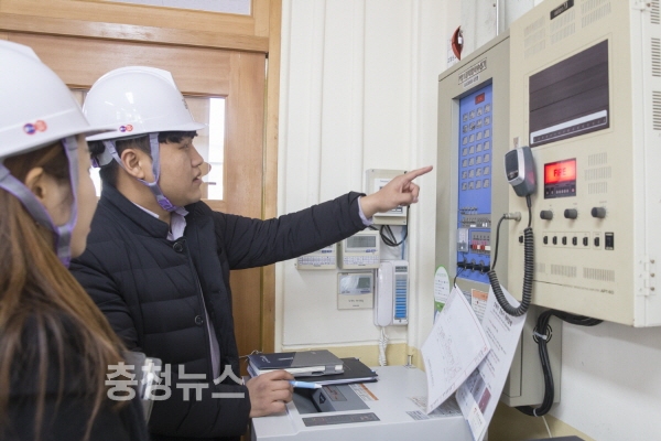 22일 교육청 관계자가 관내 교육기관 동절기 화재예방 점검을 실시하고 있는 장면