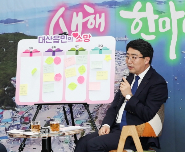 아울러 다양한 분야에 종사하는 시민들을 초청해 각본 없는 생생한 진행으로 농업용수 네트워크 조성, 황금산 주변 편의시설 확충, 버스 간·지선제 실시에 따른 불편사항 개선, 기업-지역사회 동반성장 추진, 대산지역 환경 문제 해결, 인구 증가 방안 등 30여개 질문과 건의로 폭 넓은 대화가 진행됐다.