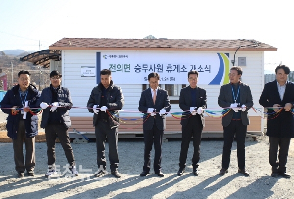 세종도시교통공사(사장 고칠진)는 24일(목) 전의면 읍내리에 전의면 승무사원 휴게소를 마련하고 개소식을 가졌다.