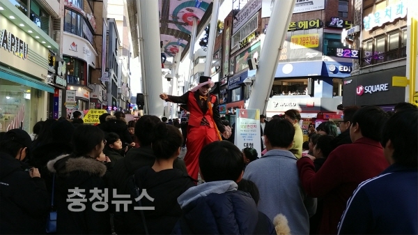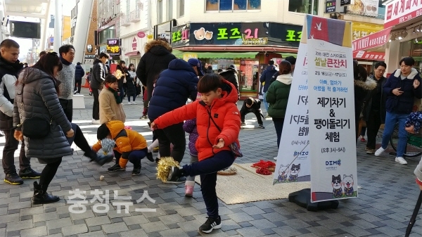 이번 설날 큰잔치 행사는 으능정이거리 대전스카이로드를 방문하는 관람객들이 직접 떡메치기를 체험하고 시식하는 등 우리 고유의 ‘전통 민속놀이 체험’과 출연자들과 자연스럽게 어울리며 사진도 찍을 수 있는 ‘거리퍼포먼스 프로그램’으로 구성했다.