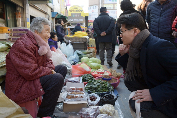 산성시장 상인과 따뜻한 눈높이를 맞추는 김정섭 시장