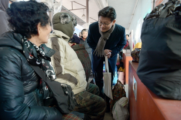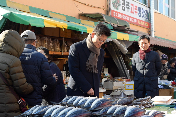 김정섭 공주시장이 설 명절을 앞둔 지난 26일 전통시장인 산성시장을 찾아 시장상인들과 시민들을 만나는 등 민생 챙기기에 나섰다.
